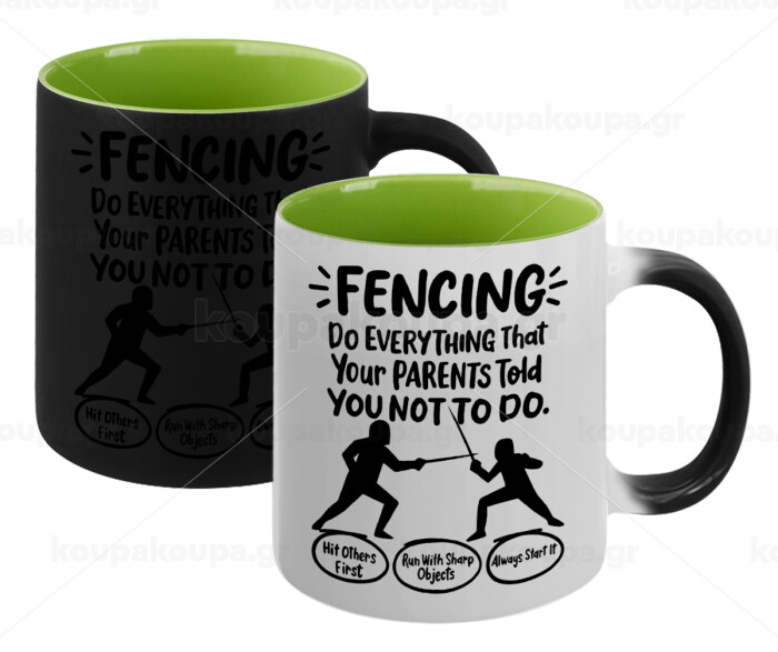 Fencing, do everything that your parents told you not to do., Κούπα Μαγική εσωτερικό πράσινο, κεραμική 330ml που αλλάζει χρώμα με το ζεστό ρόφημα
