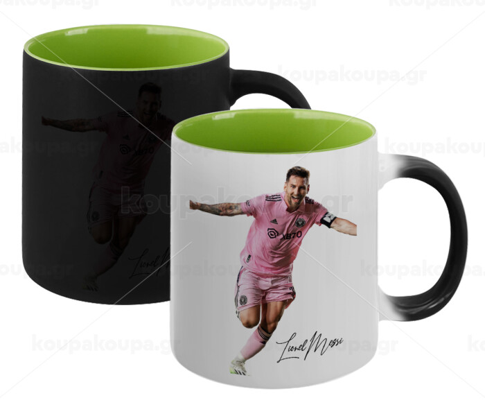 Lionel Messi inter miami jersey, Κούπα Μαγική εσωτερικό πράσινο, κεραμική 330ml που αλλάζει χρώμα με το ζεστό ρόφημα