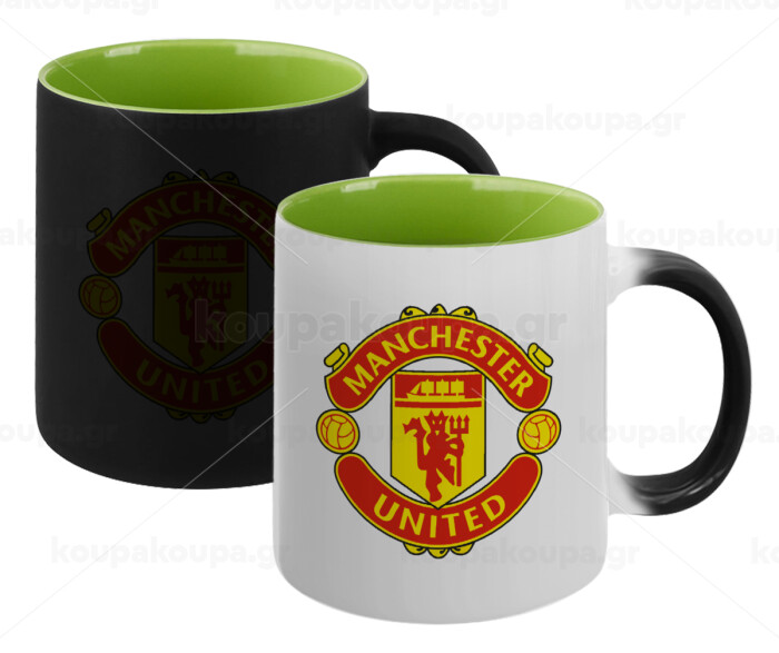 Manchester United F.C., Κούπα Μαγική εσωτερικό πράσινο, κεραμική 330ml που αλλάζει χρώμα με το ζεστό ρόφημα