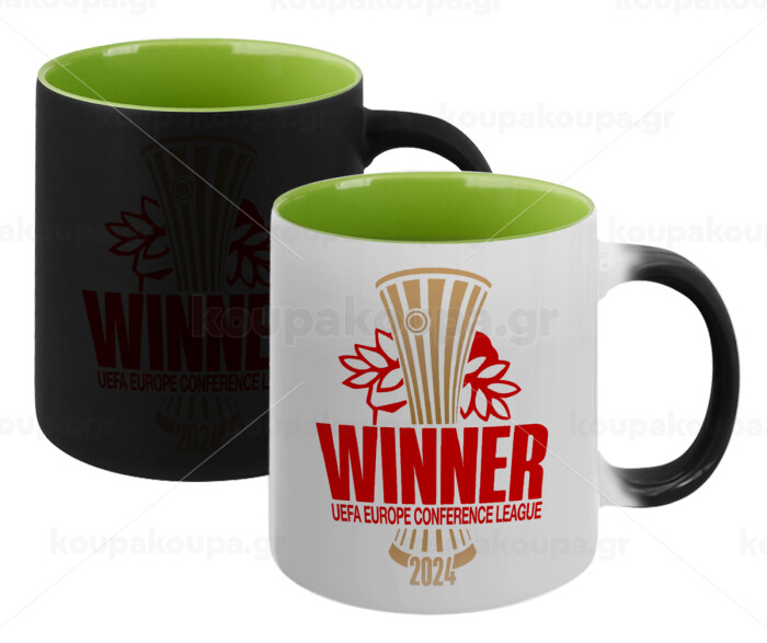 Europa Conference League WINNER, Κούπα Μαγική εσωτερικό πράσινο, κεραμική 330ml που αλλάζει χρώμα με το ζεστό ρόφημα