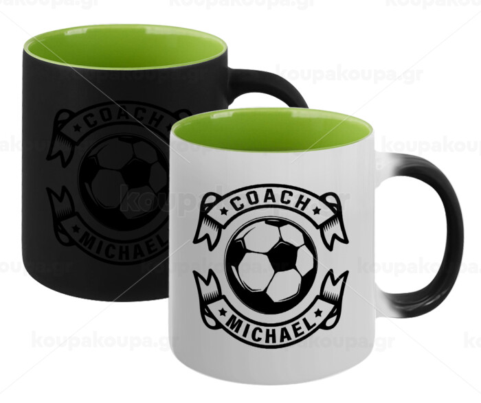 Soccer coach, Κούπα Μαγική εσωτερικό πράσινο, κεραμική 330ml που αλλάζει χρώμα με το ζεστό ρόφημα
