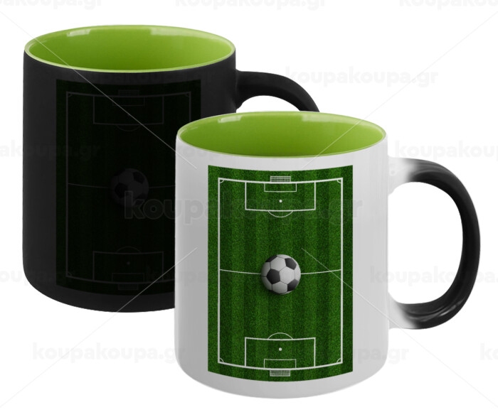 Soccer field, Γήπεδο ποδοσφαίρου, Κούπα Μαγική εσωτερικό πράσινο, κεραμική 330ml που αλλάζει χρώμα με το ζεστό ρόφημα