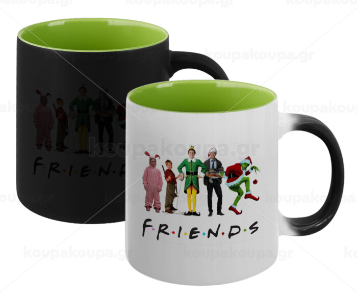 Christmas FRIENDS, Κούπα Μαγική εσωτερικό πράσινο, κεραμική 330ml που αλλάζει χρώμα με το ζεστό ρόφημα