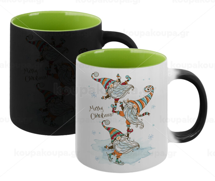 Christmas nordic gnomes, Κούπα Μαγική εσωτερικό πράσινο, κεραμική 330ml που αλλάζει χρώμα με το ζεστό ρόφημα
