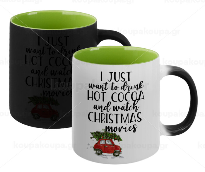 I just want to drink hot cocoa and watch christmas movies mini cooper, Κούπα Μαγική εσωτερικό πράσινο, κεραμική 330ml που αλλάζει χρώμα με το ζεστό ρόφημα