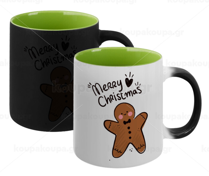 mr gingerbread, Κούπα Μαγική εσωτερικό πράσινο, κεραμική 330ml που αλλάζει χρώμα με το ζεστό ρόφημα