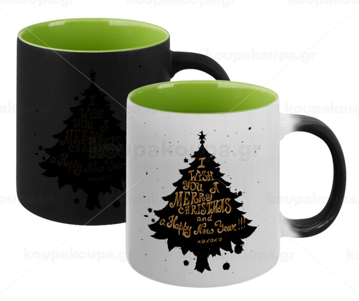 Tree, i wish you a merry christmas and a Happy New Year!!! xoxoxo, Κούπα Μαγική εσωτερικό πράσινο, κεραμική 330ml που αλλάζει χρώμα με το ζεστό ρόφημα