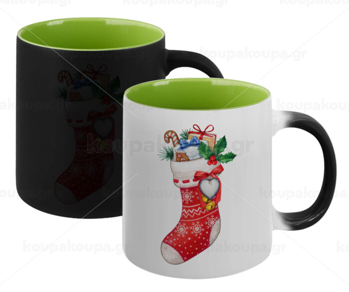 Xmas boot, Κούπα Μαγική εσωτερικό πράσινο, κεραμική 330ml που αλλάζει χρώμα με το ζεστό ρόφημα