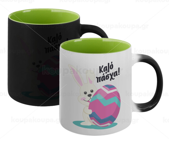 Καλό πάσχα, Κούπα Μαγική εσωτερικό πράσινο, κεραμική 330ml που αλλάζει χρώμα με το ζεστό ρόφημα
