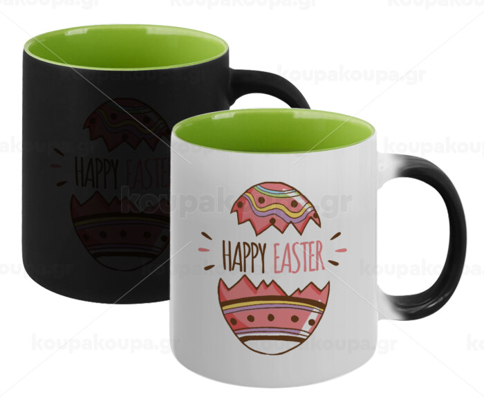 Happy easter egg, Κούπα Μαγική εσωτερικό πράσινο, κεραμική 330ml που αλλάζει χρώμα με το ζεστό ρόφημα