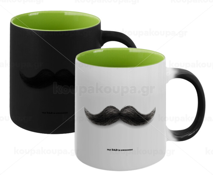 Ο καλύτερος μουστακαλής του κόσμου!!!, Κούπα Μαγική εσωτερικό πράσινο, κεραμική 330ml που αλλάζει χρώμα με το ζεστό ρόφημα
