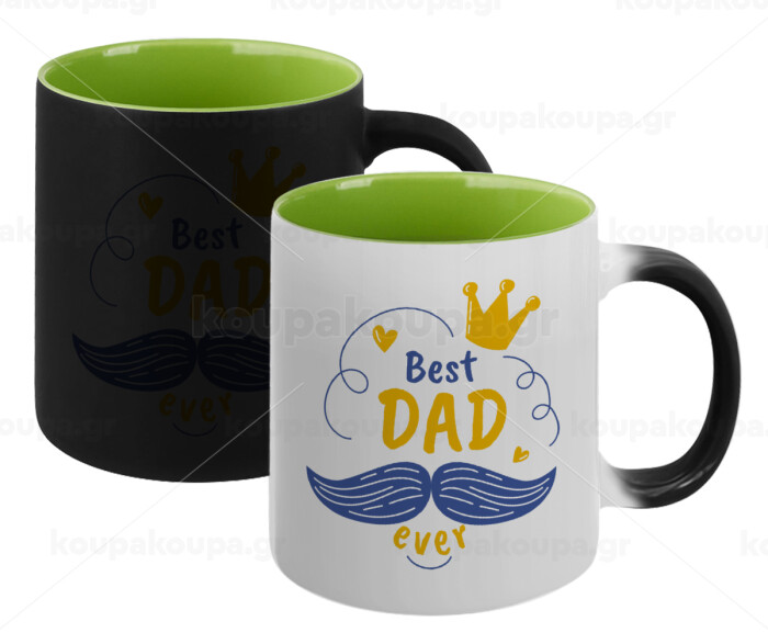 Best dad ever ο Βασιλιάς, Κούπα Μαγική εσωτερικό πράσινο, κεραμική 330ml που αλλάζει χρώμα με το ζεστό ρόφημα