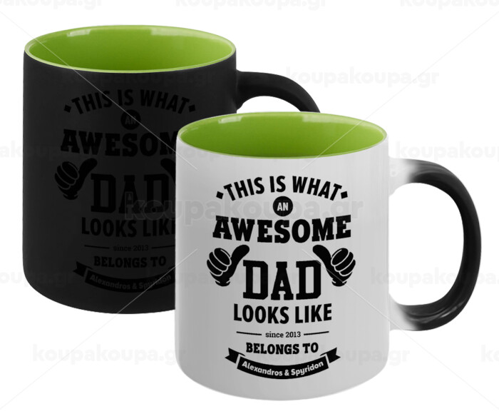 This is what an Awesome DAD looks like, Κούπα Μαγική εσωτερικό πράσινο, κεραμική 330ml που αλλάζει χρώμα με το ζεστό ρόφημα