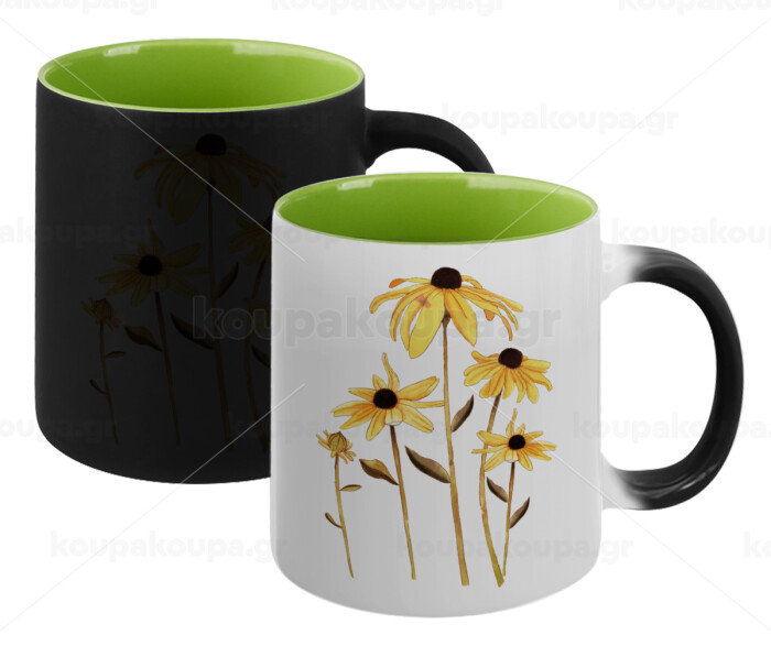 Daisies flower, Κούπα Μαγική εσωτερικό πράσινο, κεραμική 330ml που αλλάζει χρώμα με το ζεστό ρόφημα