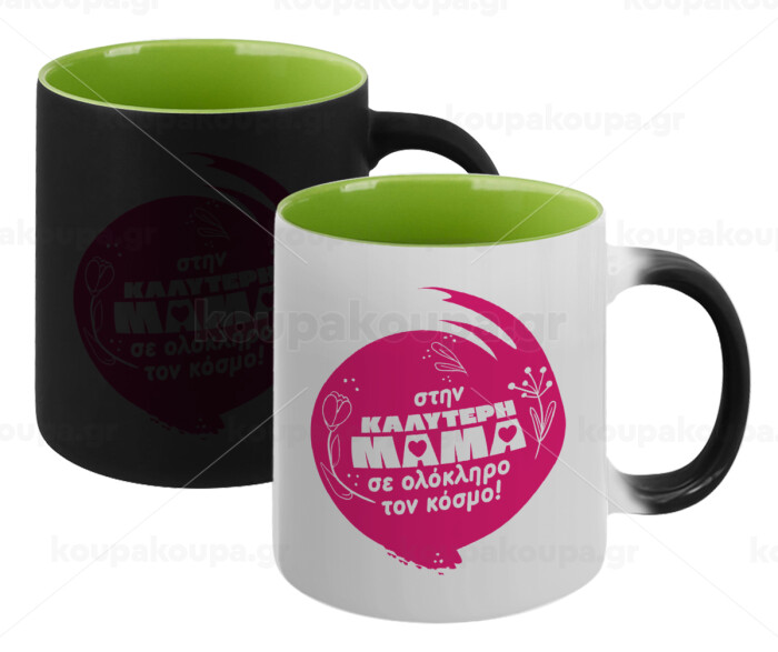 Στην καλύτερη μαμά του κόσμου!, Κούπα Μαγική εσωτερικό πράσινο, κεραμική 330ml που αλλάζει χρώμα με το ζεστό ρόφημα