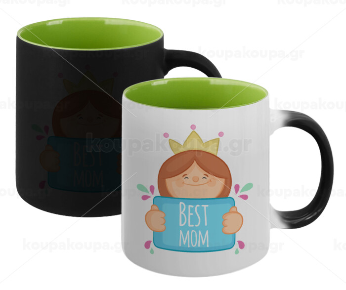 Best mom Princess, Κούπα Μαγική εσωτερικό πράσινο, κεραμική 330ml που αλλάζει χρώμα με το ζεστό ρόφημα