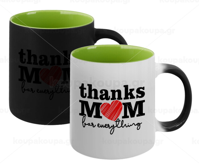 Thanks mom for everything, Κούπα Μαγική εσωτερικό πράσινο, κεραμική 330ml που αλλάζει χρώμα με το ζεστό ρόφημα