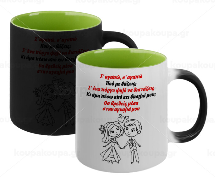 Σ΄ αγαπώ σ΄ αγαπώ που με βάζεις, Κούπα Μαγική εσωτερικό πράσινο, κεραμική 330ml που αλλάζει χρώμα με το ζεστό ρόφημα