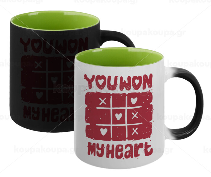 Τρίλιζα you won my heart, Κούπα Μαγική εσωτερικό πράσινο, κεραμική 330ml που αλλάζει χρώμα με το ζεστό ρόφημα