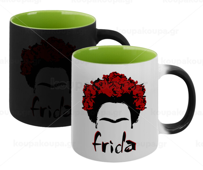 Frida, Κούπα Μαγική εσωτερικό πράσινο, κεραμική 330ml που αλλάζει χρώμα με το ζεστό ρόφημα