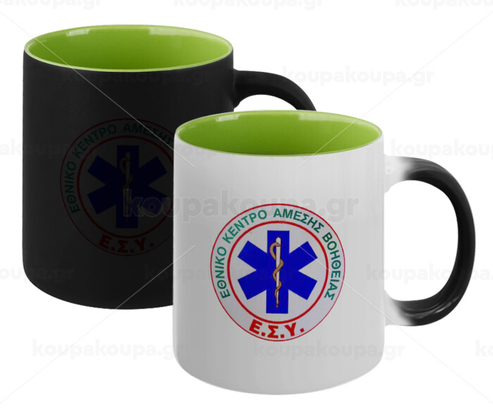 ΕΚΑΒ, Κούπα Μαγική εσωτερικό πράσινο, κεραμική 330ml που αλλάζει χρώμα με το ζεστό ρόφημα
