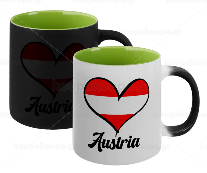Austria flag, Κούπα Μαγική εσωτερικό πράσινο, κεραμική 330ml που αλλάζει χρώμα με το ζεστό ρόφημα