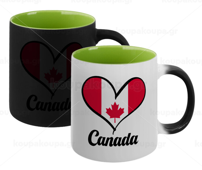 Canada flag, Κούπα Μαγική εσωτερικό πράσινο, κεραμική 330ml που αλλάζει χρώμα με το ζεστό ρόφημα