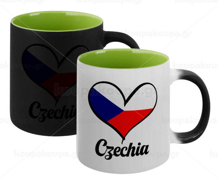 Czechia flag, Κούπα Μαγική εσωτερικό πράσινο, κεραμική 330ml που αλλάζει χρώμα με το ζεστό ρόφημα