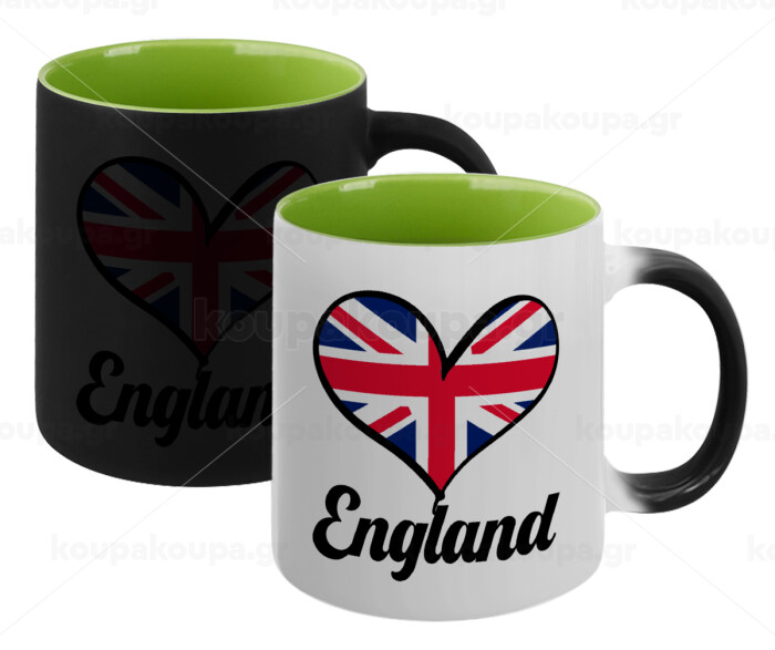 England flag, Κούπα Μαγική εσωτερικό πράσινο, κεραμική 330ml που αλλάζει χρώμα με το ζεστό ρόφημα