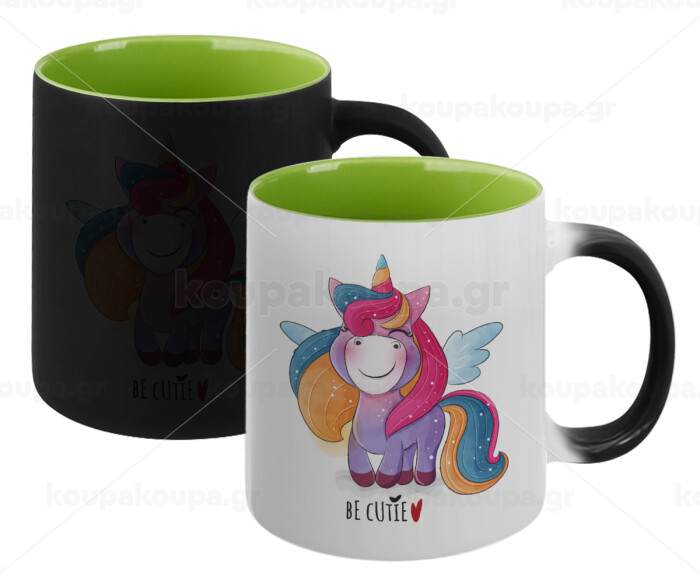 Pink unicorn, Κούπα Μαγική εσωτερικό πράσινο, κεραμική 330ml που αλλάζει χρώμα με το ζεστό ρόφημα