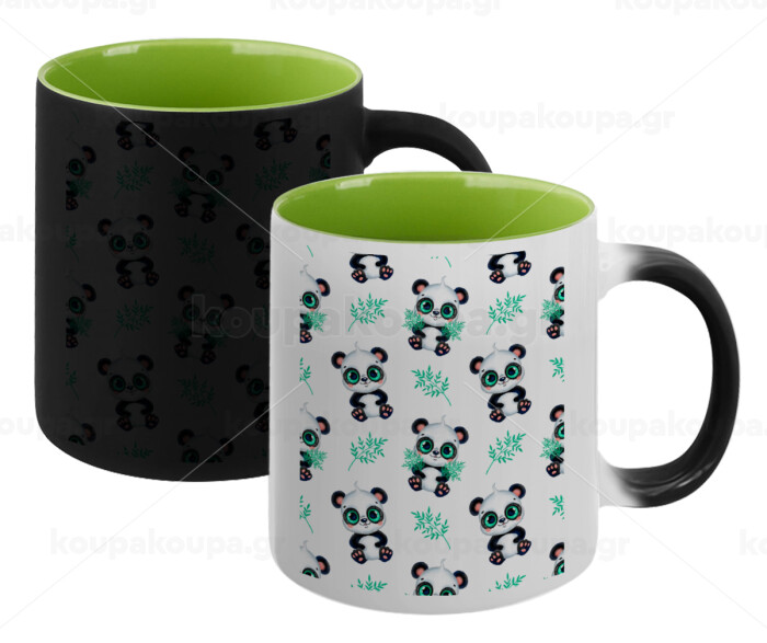 Panda, Κούπα Μαγική εσωτερικό πράσινο, κεραμική 330ml που αλλάζει χρώμα με το ζεστό ρόφημα