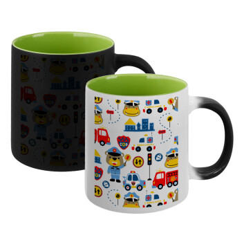 Rescue team cartoon, Κούπα Μαγική εσωτερικό πράσινο, κεραμική 330ml που αλλάζει χρώμα με το ζεστό ρόφημα
