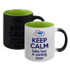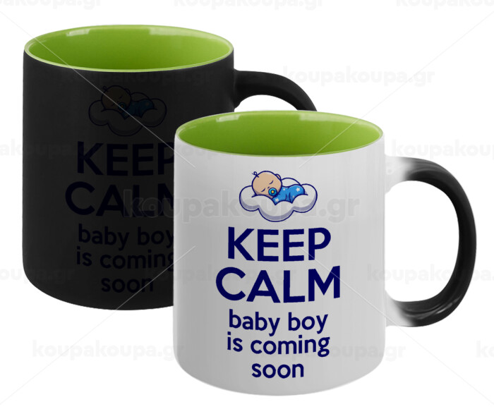 KEEP CALM baby boy is coming soon!!!, Κούπα Μαγική εσωτερικό πράσινο, κεραμική 330ml που αλλάζει χρώμα με το ζεστό ρόφημα