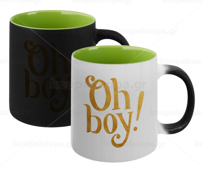 Oh baby gold, Κούπα Μαγική εσωτερικό πράσινο, κεραμική 330ml που αλλάζει χρώμα με το ζεστό ρόφημα