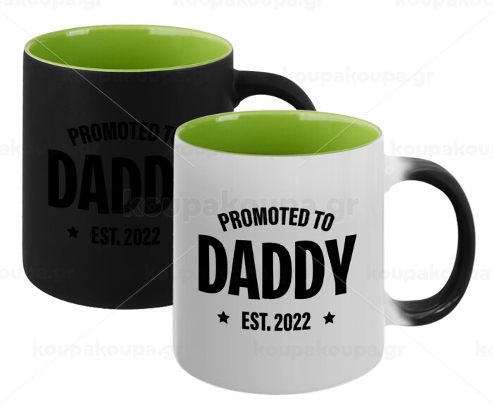 Promoted to Daddy, Κούπα Μαγική εσωτερικό πράσινο, κεραμική 330ml που αλλάζει χρώμα με το ζεστό ρόφημα