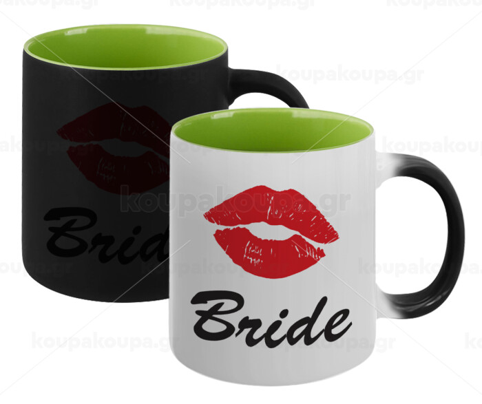 Bride kiss, Κούπα Μαγική εσωτερικό πράσινο, κεραμική 330ml που αλλάζει χρώμα με το ζεστό ρόφημα