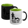Happy Wife, Happy Life, Κούπα Μαγική εσωτερικό πράσινο, κεραμική 330ml που αλλάζει χρώμα με το ζεστό ρόφημα