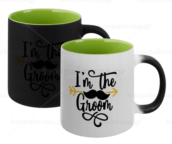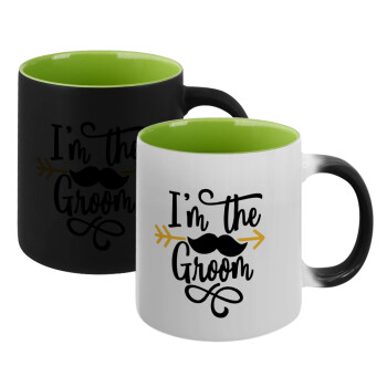 I'm the groom mustache, Κούπα Μαγική εσωτερικό πράσινο, κεραμική 330ml που αλλάζει χρώμα με το ζεστό ρόφημα