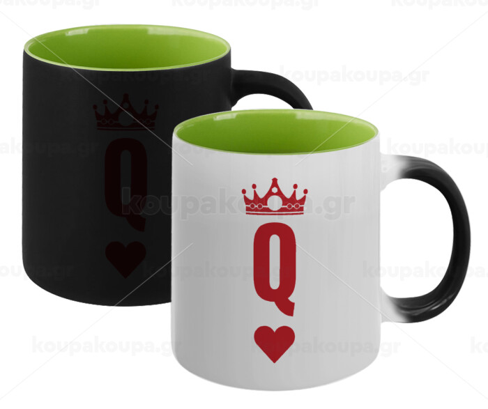 Queen, Κούπα Μαγική εσωτερικό πράσινο, κεραμική 330ml που αλλάζει χρώμα με το ζεστό ρόφημα