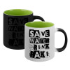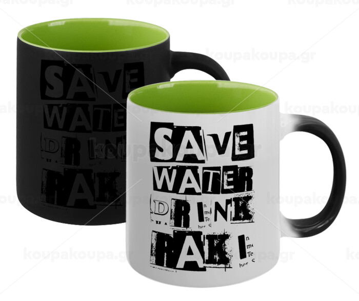 Save Water, Drink RAKI, Κούπα Μαγική εσωτερικό πράσινο, κεραμική 330ml που αλλάζει χρώμα με το ζεστό ρόφημα
