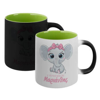 Η νονά μου, ελεφαντάκι ροζ, Κούπα Μαγική εσωτερικό πράσινο, κεραμική 330ml που αλλάζει χρώμα με το ζεστό ρόφημα