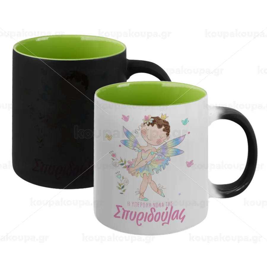 Η νονά μου, Νεράϊδα, Κούπα Μαγική εσωτερικό πράσινο, κεραμική 330ml που αλλάζει χρώμα με το ζεστό ρόφημα