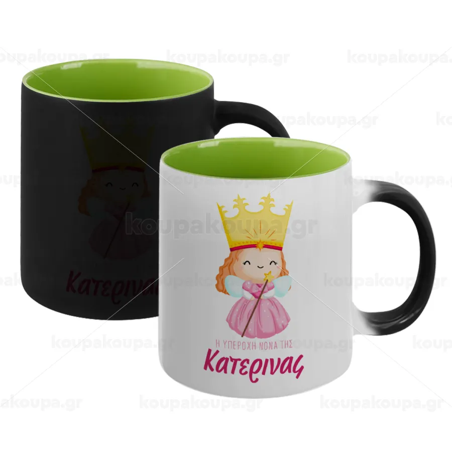 Η νονά μου, πριγκίπισσα, Κούπα Μαγική εσωτερικό πράσινο, κεραμική 330ml που αλλάζει χρώμα με το ζεστό ρόφημα