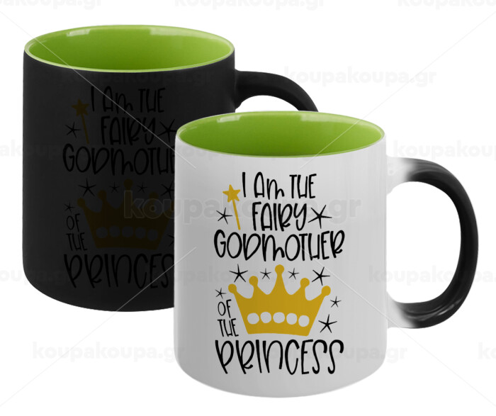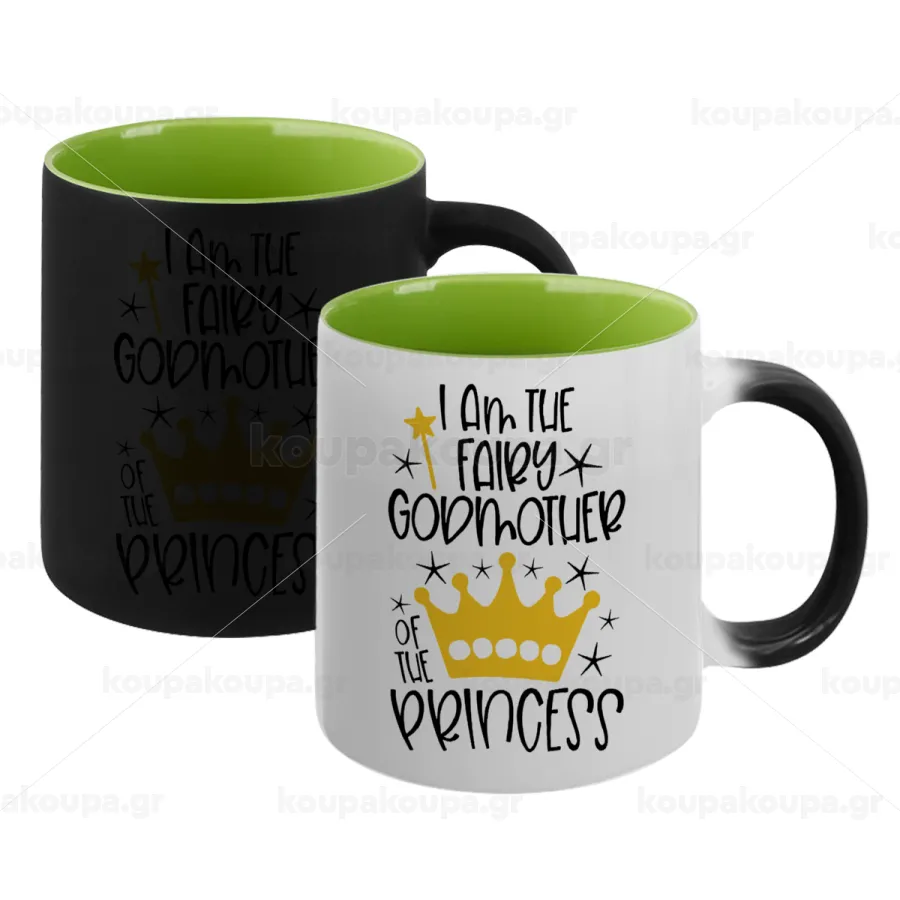 I am the fairy Godmother of the Princess, Κούπα Μαγική εσωτερικό πράσινο, κεραμική 330ml που αλλάζει χρώμα με το ζεστό ρόφημα