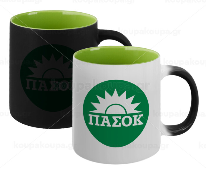 PASOK Green/White, Κούπα Μαγική εσωτερικό πράσινο, κεραμική 330ml που αλλάζει χρώμα με το ζεστό ρόφημα