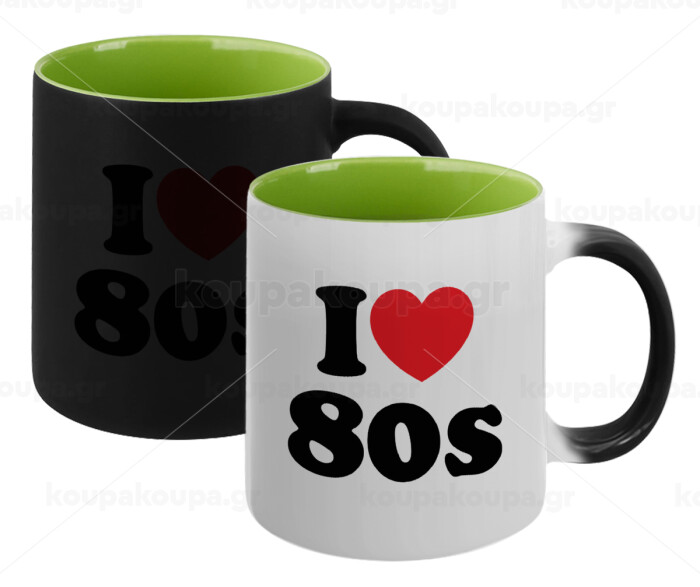 I Love 80s, Κούπα Μαγική εσωτερικό πράσινο, κεραμική 330ml που αλλάζει χρώμα με το ζεστό ρόφημα
