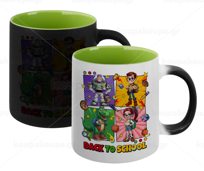 Back to the School Buzz & Friends, Κούπα Μαγική εσωτερικό πράσινο, κεραμική 330ml που αλλάζει χρώμα με το ζεστό ρόφημα