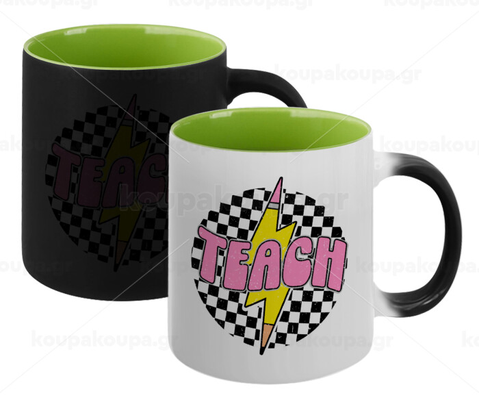 Teach, Κούπα Μαγική εσωτερικό πράσινο, κεραμική 330ml που αλλάζει χρώμα με το ζεστό ρόφημα