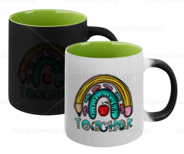 Teacher, Κούπα Μαγική εσωτερικό πράσινο, κεραμική 330ml που αλλάζει χρώμα με το ζεστό ρόφημα