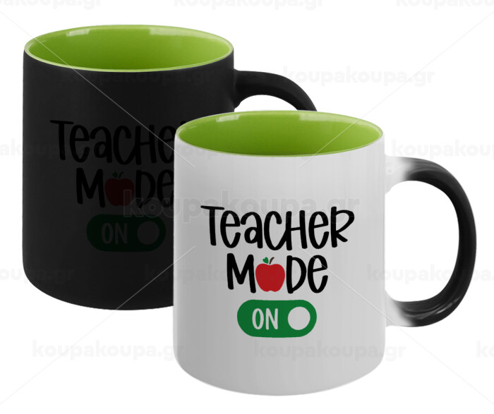 Teacher mode ON, Κούπα Μαγική εσωτερικό πράσινο, κεραμική 330ml που αλλάζει χρώμα με το ζεστό ρόφημα